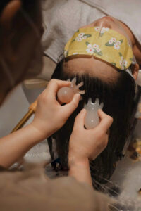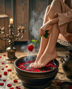 - Bước 2: Ngâm tay/chân trong nước ấm với tinh dầu thư giãn.